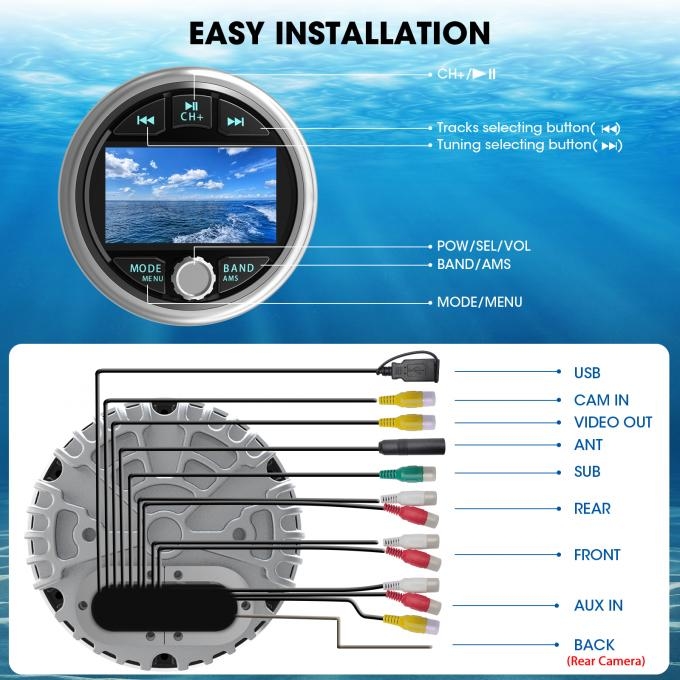 The standout selling point of our marine stereo is its waterproof design, ensuring it remains unaffected by water damage. Whether you're cruising through rough waters or encountering splashes, our stereo system will continue to deliver exceptional sound quality without compromise.